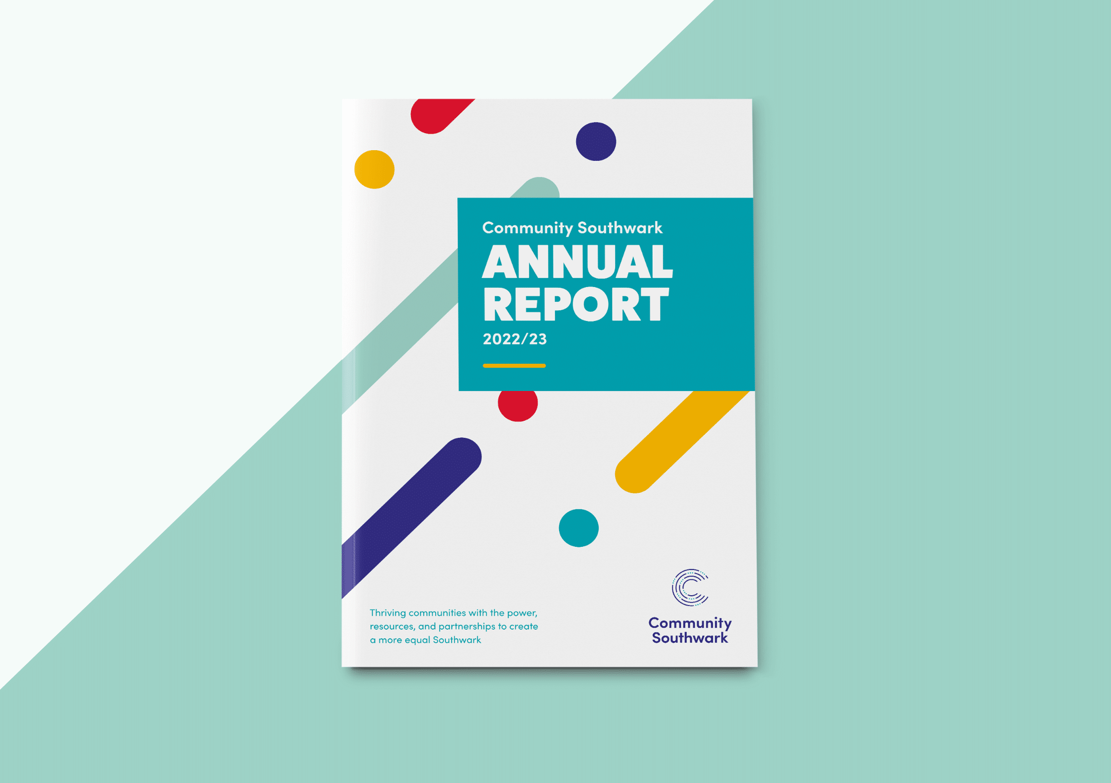 Community Southwark is a charitable organisation based in Southwark, London, focused on supporting and empowering local communities. We were asked to design their 2023 Annual Report.