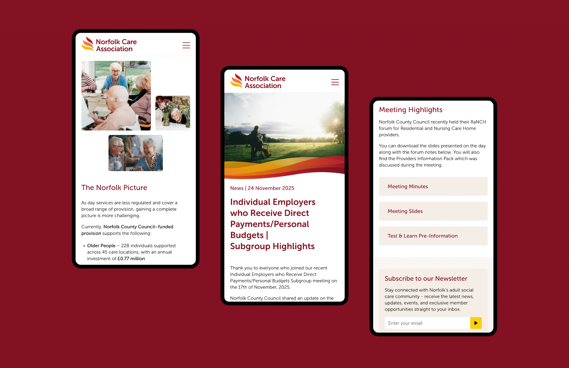 Norfolk Care Association is the representative voice for social care providers across Norfolk and Waveney, supporting a diverse network of organisations through advocacy, collaboration and sector insight.