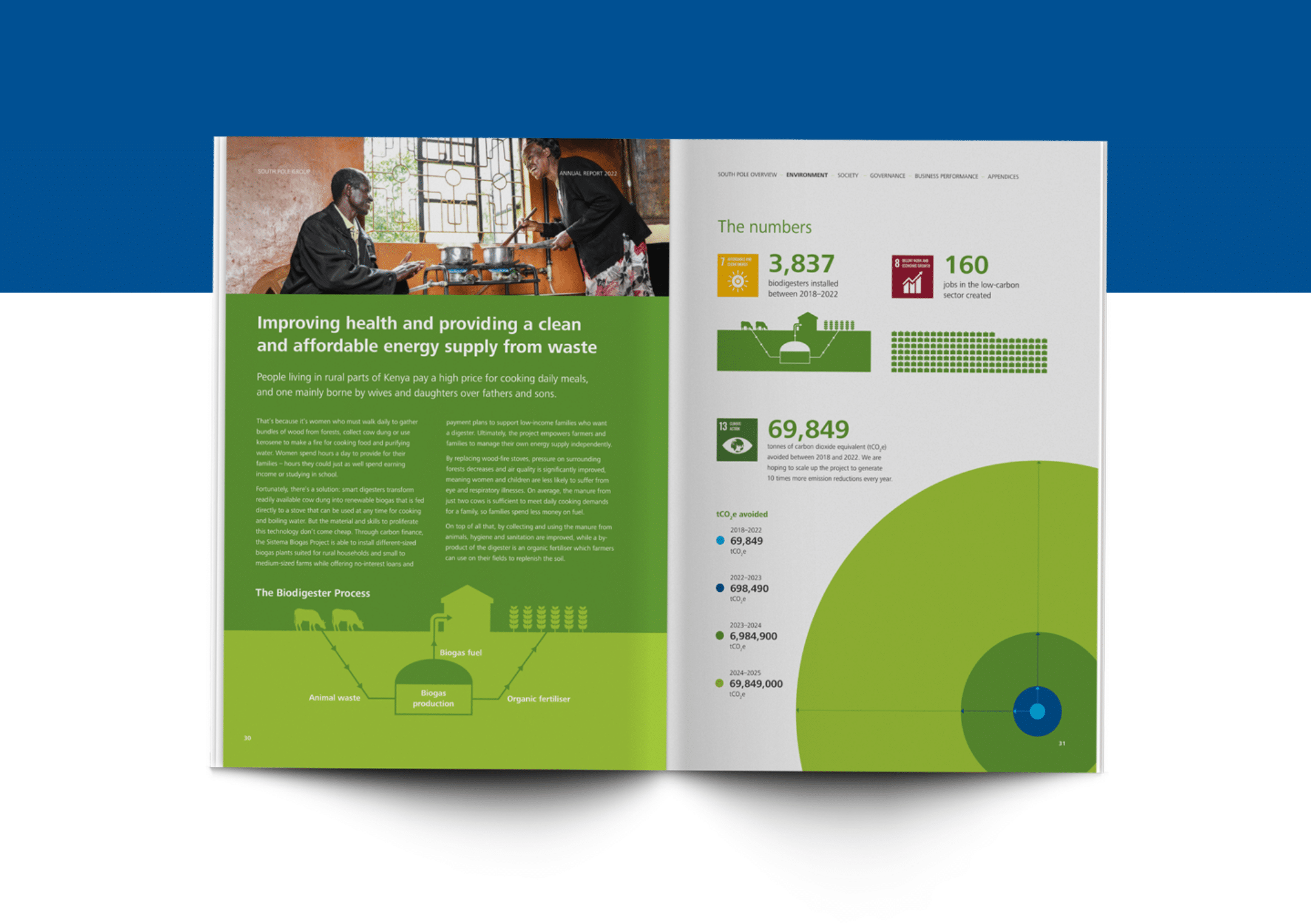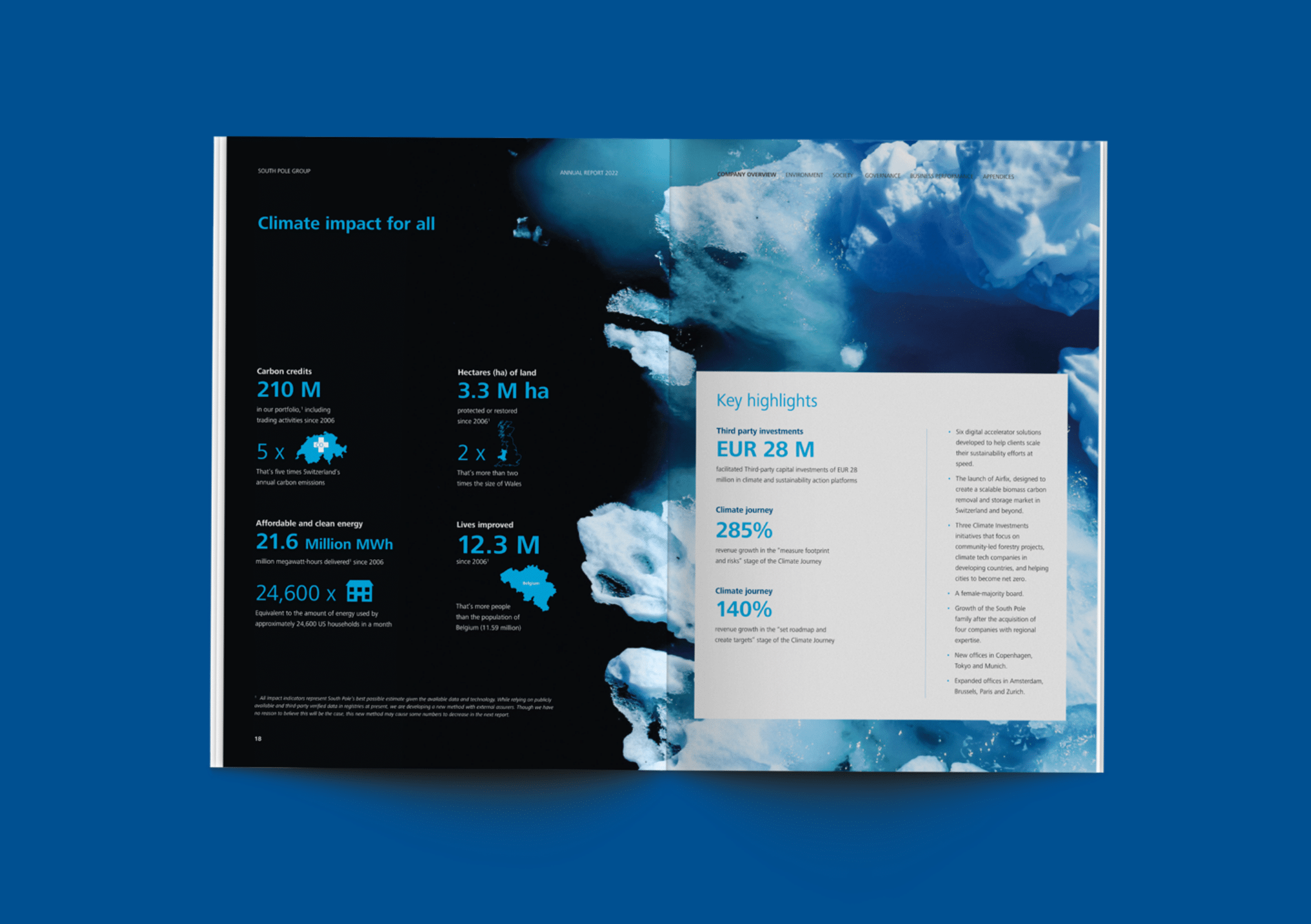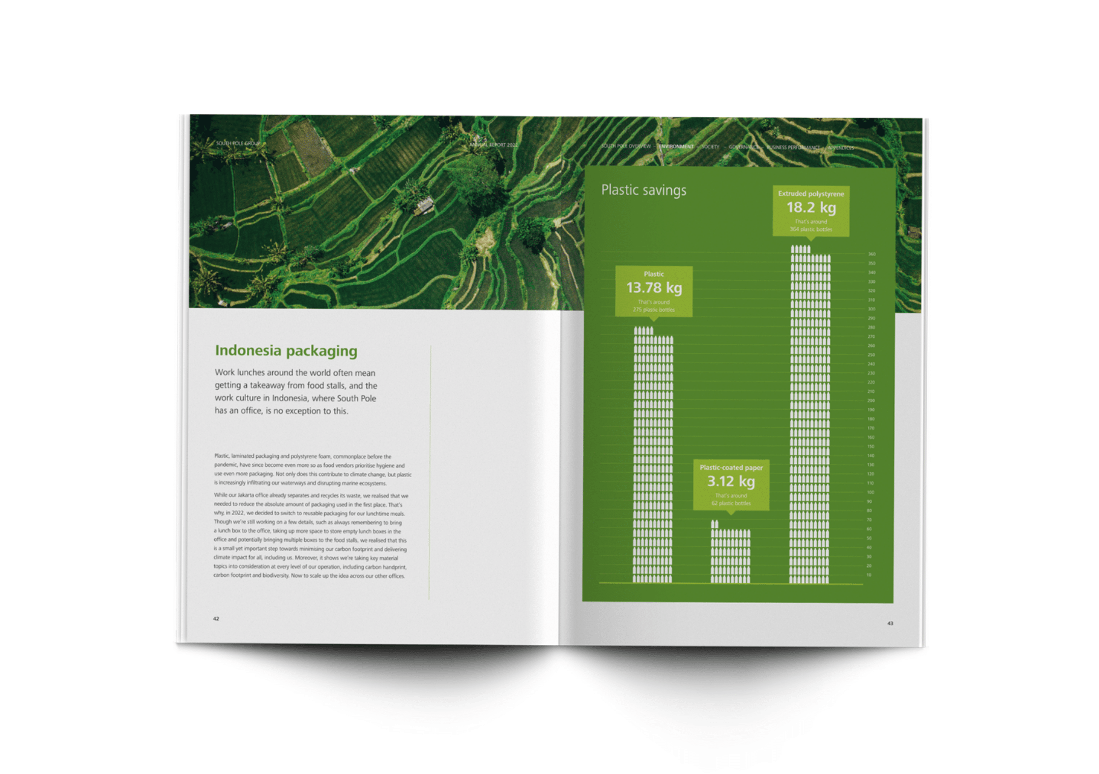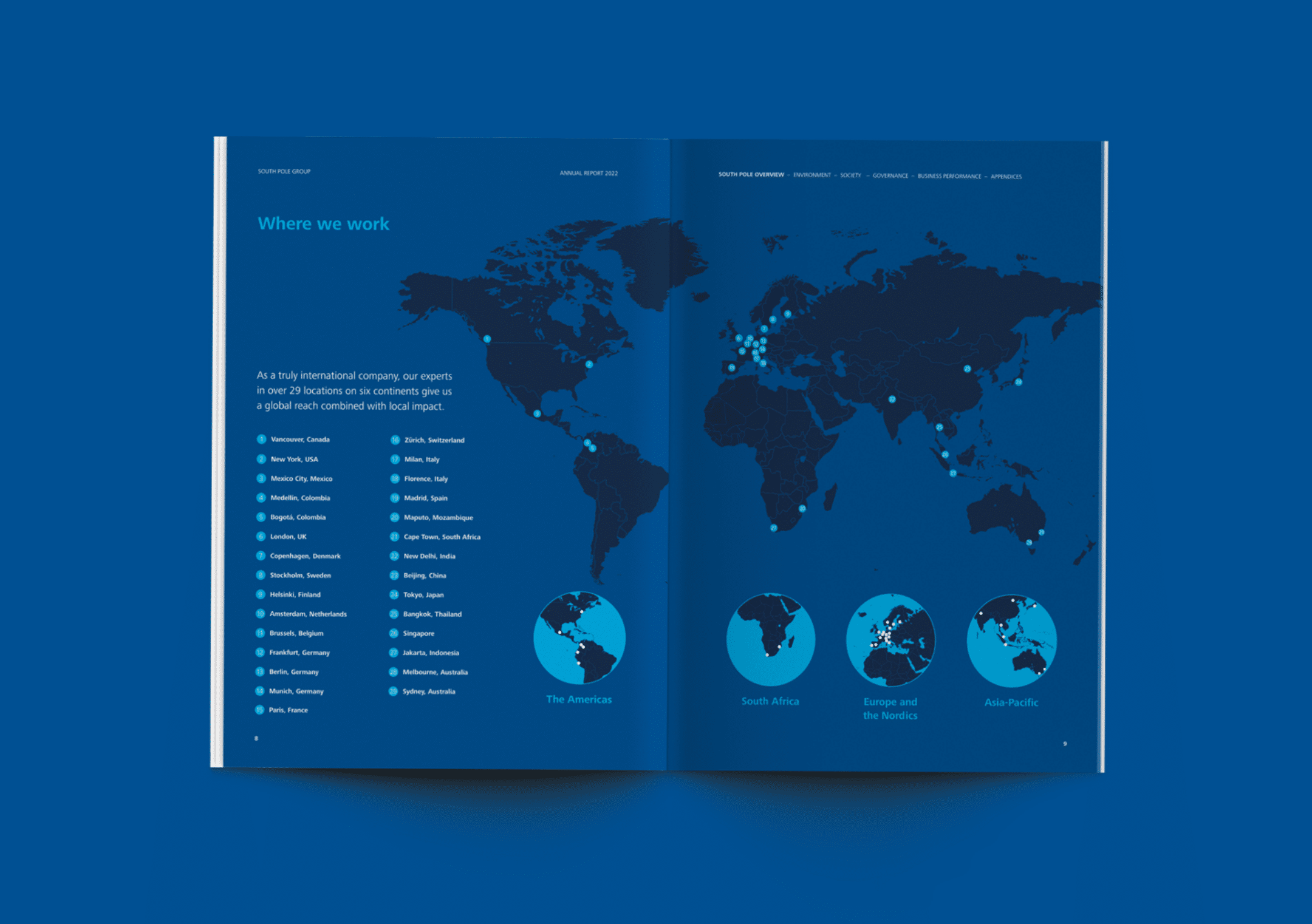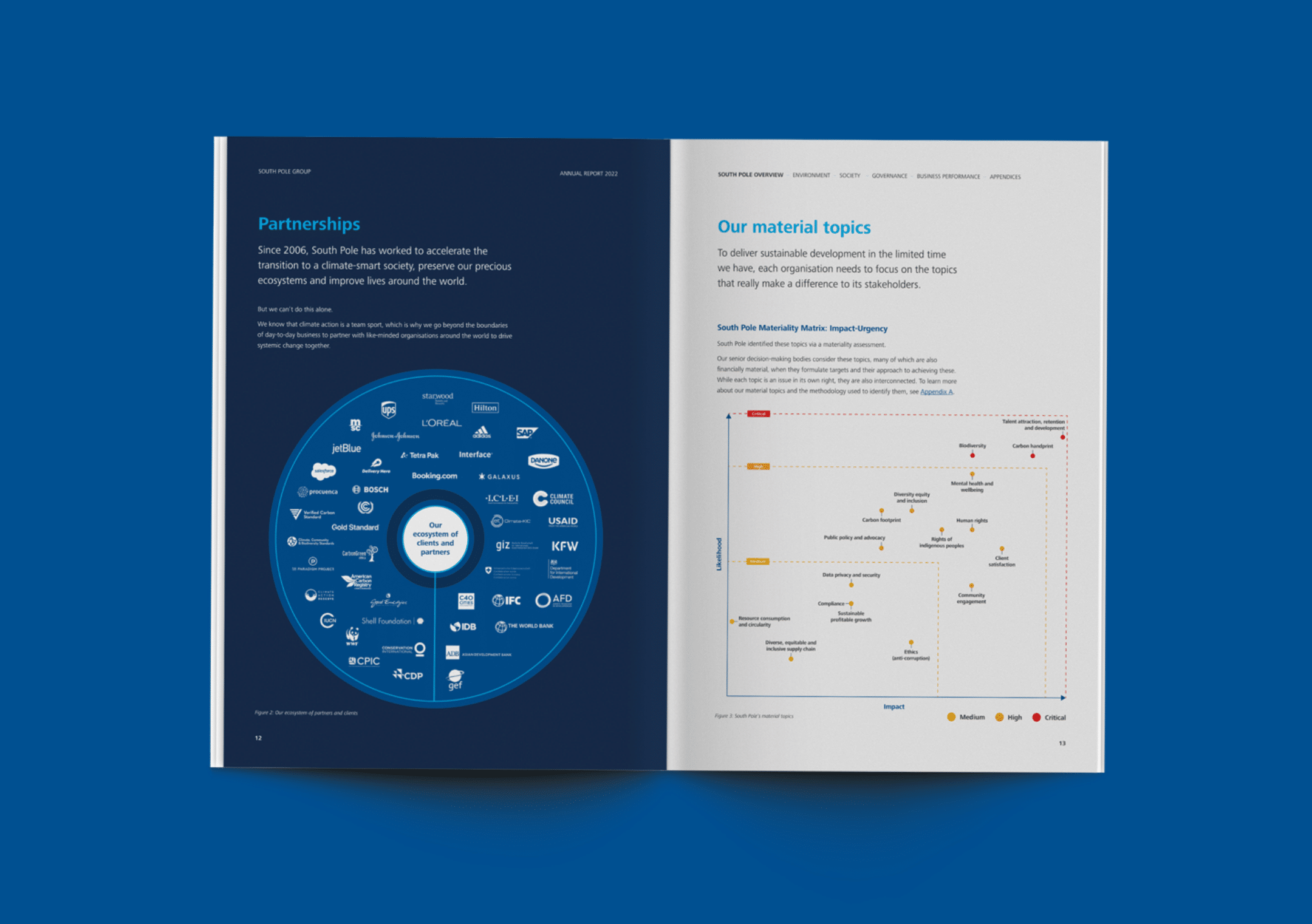 South Pole is a global climate consultancy helping organisations measure, reduce and certify their environmental impact across more than 20 countries. Tessellate designed an annual review and ESG report which was a 200-page publication combining corporate performance data with South Pole’s own environmental credentials in a single cohesive document.
